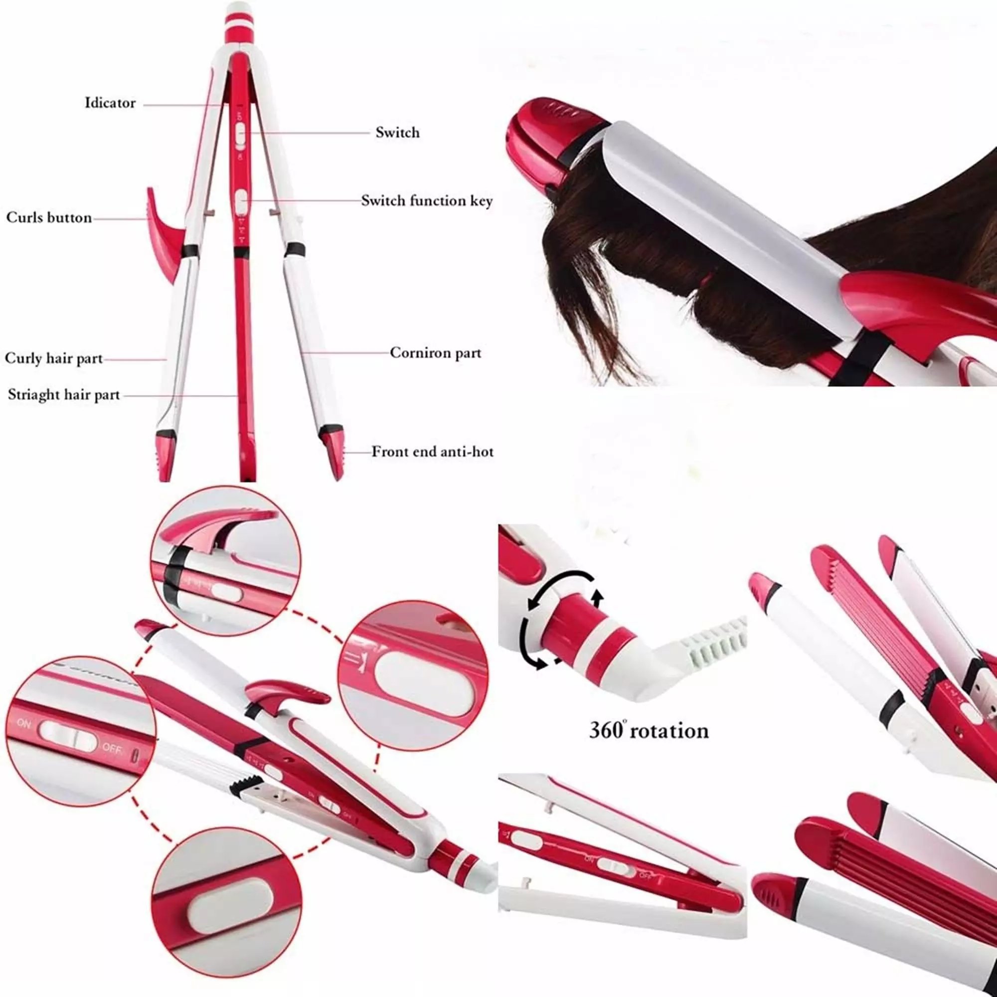 3 In 1 Shinon Hair Straightener, Hair Curler & Hair Crimper