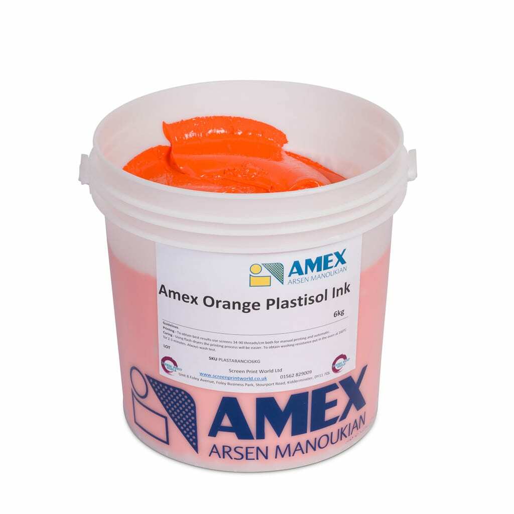 Amex Orange Plastisol is an affordable press ready ink, available in both 1kg and 6kg tubs. Amex plastisol inks are phthalate and heavy metal free and due to their fine milling offer a soft feel and good elasticity once cured. They have a great mixing consistency and are super opaque and perfect for printing onto dark garments. These inks are quality Italian made inks and can be mixed together to obtain various shades and are suitable for manual or automatic printing.
