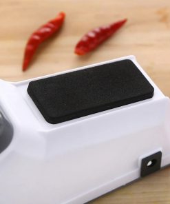 【Multifunctional Electric Knife Sharpener】Mini double sided electric knife sharpener. Quick Sharpening. Say goodbye to traditional sharpening methodsand sharpen knives in 5 seconds.