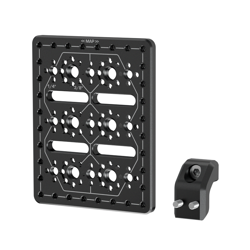 This cheese plate kit is also perfect for wired components. The adaptor provides 20mm of clearance from your camera body, allowing you to easily insert wires into respective ports. The cheese plate also comes with additional channels to help thread cable ties to help manage the wiring.